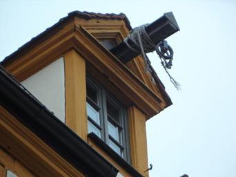 Keywords: block and tackle gable pull up rope load lifter old lift