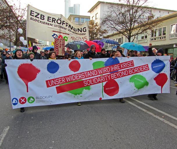 | Keywords: Blockupy 2014 Transparent November2.jpg de Transparent bei der Blockupy-Demonstration im November 2014 Frankfurt am Main own Stefan Bellini 2014-11-22 Location 50 6 43 39 N 8 40 59 24 E Blockupy 2014 Frankfurt am Main Photographs taken on 2014-11-22 Frankfurt am Main Files by User Stefan Bellini - Photos taken in Hesse Taken with Canon PowerShot SX230 HS Cc-zero |