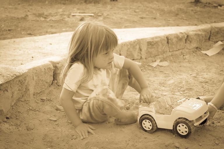Keywords: blonde child linda playing cart playing in the sand playing in the park