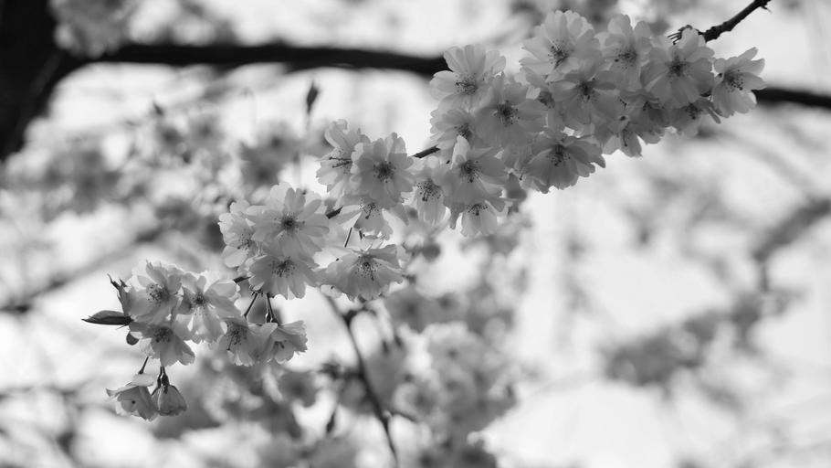 Keywords: blossom bloom bud pink cherry blossom nature spring flower plant aesthetic close shoots garden branch brown flora branches tree black and white