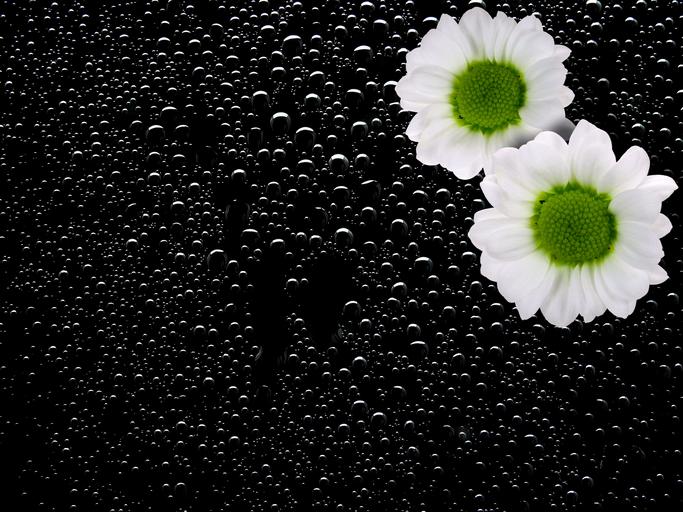 Keywords: blossom bloom flower nature plant summer spring flora white drip drop of water wet background background image map greeting card postcard chrysanthemum