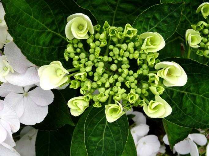 Keywords: blossom bloom hydrangea bouquet close white green plate flower beautiful nature flower plant flora garden petals colorful structure grain leaves
