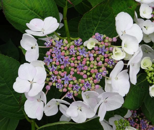 Keywords: blossom bloom hydrangea close white blue pink purple green plate flower beautiful nature flower plant flora garden petals colorful small funny leaves cute structure grain