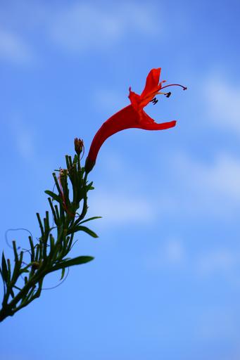 Keywords: blossom bloom red bush evergreen bush plant cape honeysuckle kapbignonie tecoma capensis tecomaria capensis bignoniaceae trumpet vine crop
