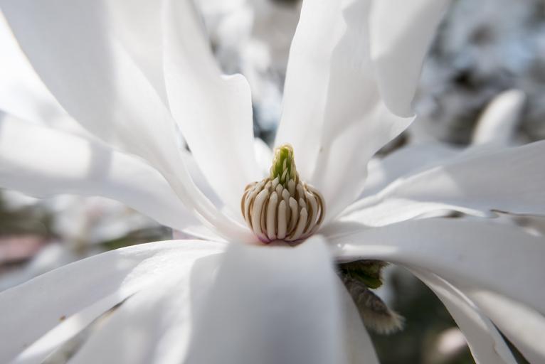 Keywords: blossom bloom spring white nature star magnolia light white flower flower macro close back light plant