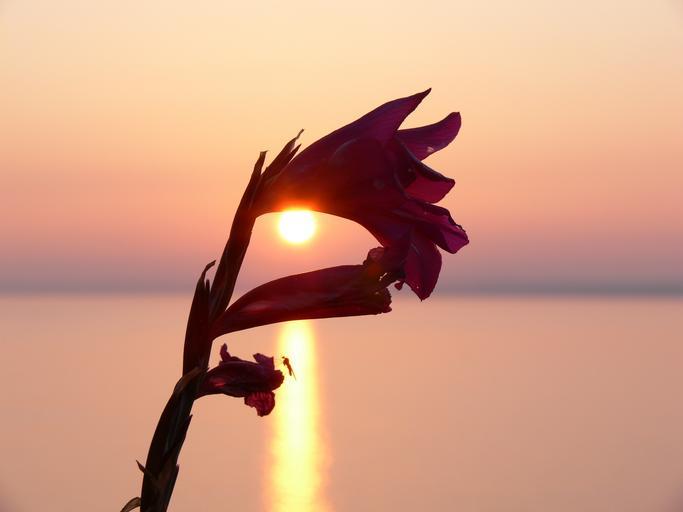 Keywords: blossom bloom sunset mosquito water reflection back light insect lake horizon romantic silhouette afterglow