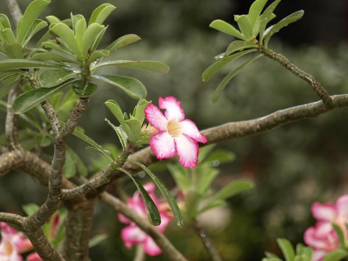 Keywords: blossom bloom tropics after the rain tropical flowers bloom flora inflorescence bush bright leaves color colorful exotic flower pink white tender nature garden bicolor grove road branches coloring