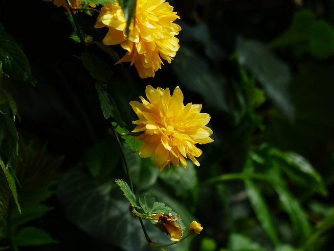 Keywords: blossom bloom yellow bush bloom road branch japanese kerrie kerria japonica yamabuki ranunkel shrub amber kerria rose greenhouse rosaceae ornamental plant kerria japonica pleniflora pleniflora