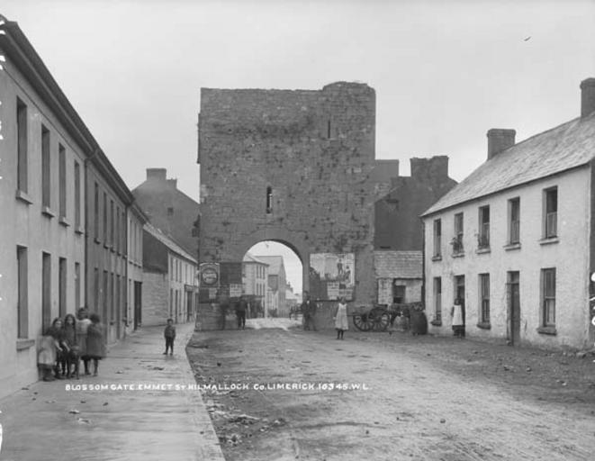| Keywords: Blossom Gate Kilmallock County Limerick.jpg Blossom Gate Kilmallock County Limerick Ireland Photograph taken between 1880 and 1914 Glass negative Part of Lawrence Collection at National Library of Ireland Reference number L_ROY_10345 http //maps google ie/maps f q source s_q hl en geocode q Kilmallock aq 0 sll 53 401034 -8 307638 sspn 6 002817 14 040527 ie UTF8 hq hnear Kilmallock +County+Limerick layer c cbll 52 398836 -8 575157 panoid GPAyHDJftfGRNGgbfHnMRQ cbp 12 30 56 0 -3 17 ll 52 39874 -8 575215 spn 0 007633 0 01929 z 16 Modern view Google street view Flickr http //flickr com/photos/47290943 N03/5416376278 Blossom Gate Kilmallock Co Limerick 2008-04-11 12 52 35 http //www flickr com/people/47290943 N03 National Library of Ireland on The Commons User Flickr upload bot/upload-pd 22 37 7 June 2011 UTC Guliolopez thumb left 200px Zoomed detail of posters/gate Kilmallock Images from the National Library of Ireland History of County Limerick Ireland in the 1900s PD-Old |
