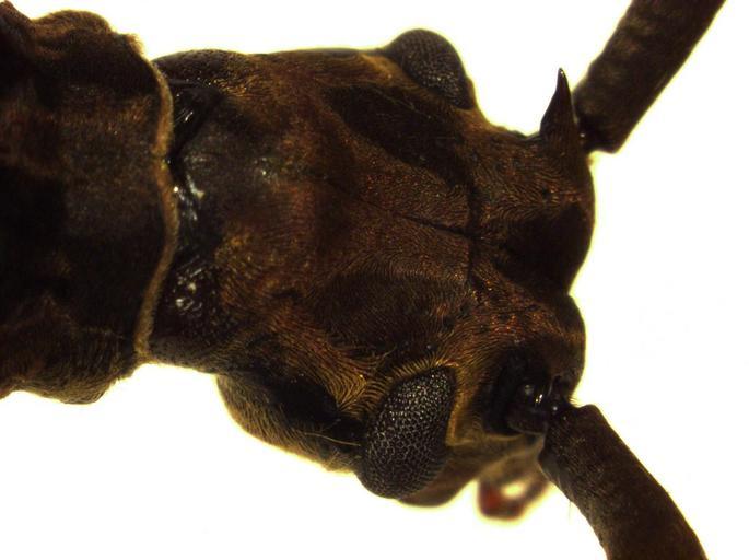 | Keywords: Blosyropus spinosus4.jpg en Blosyropus spinosus Redtenbacher 1868 adult female head photo taken by me S E Thorpe 2013-06-20 NEW ZEALAND WO Maungatautari Mountain -38 02808 175 56976 South Cell Inside Cell Transect 2 Pitfall trap G 21 Jan-24 Feb 2013 C H Watts Blosyropus spinosus Cerambycidae anatomy |