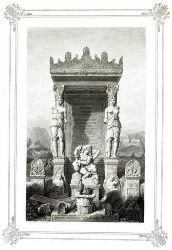 | Keywords: Blouet Morée.jpg donnée par A Blouet «Les fragments dont il se compose sont un couronnement en marbre trouvé à Epidaure; des cariatides sic romaines de Loucos près d'Astros; une Minerve et un Hercule; des métopes découvertes par nous au temple de Jupiter Olympien à Olympie; un sphinx ébauché venant de Délos; un chapiteau composite trouvé à Coron; des petits vases cinéraires trouvés dans les tombeaux d'Egine; divers fragments d'architecture et une inscription sur laquelle sont indiquées les principales villes explorées dans le Voyage <br /> Dans le fond à gauche est l'Acrocorinthe à droite l'Acropole d'Athènes <br /> Les figures sont un militaire français montrant à un Grec une frégate française qui débarque les troupes par lesquelles la liberté et la paix sont rendues à la Grèce Près du Français est un Turc rendant ses armes » PD-old Abel Blouet Temples of Zeus |