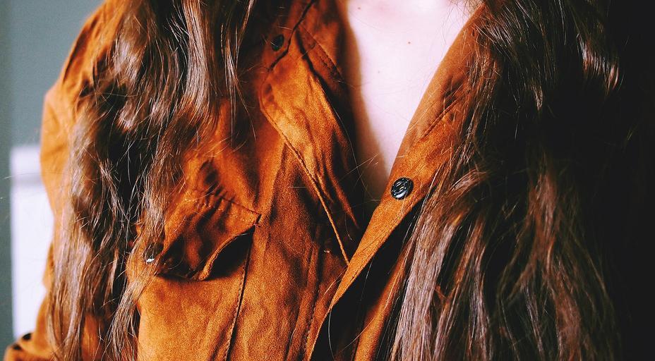 Keywords: blouse suede female fashion girl people person textile clothing shirt clothes long hair brunette