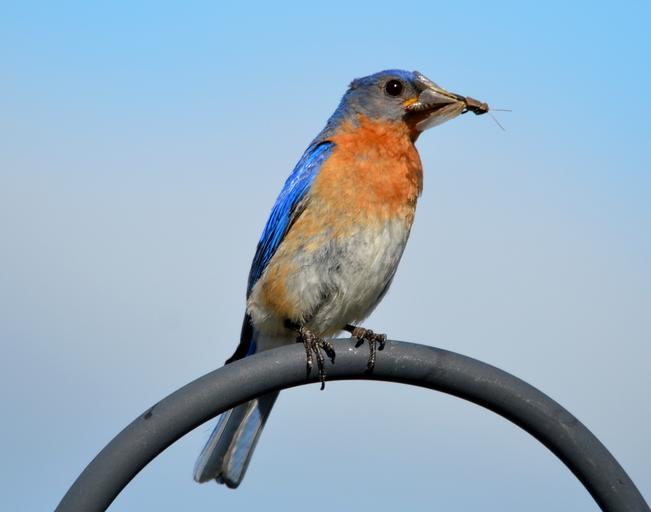 Keywords: blue bird bird nature wildlife animal beak bluebird feather wild perch feathered songbird spring bug feeding feed