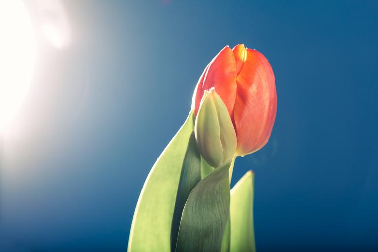 Keywords: blue botany bright flare flower friendly light low key nature orange plant portrait selective focus shallow depth of field shallow dof shallow focus spring studio tulip