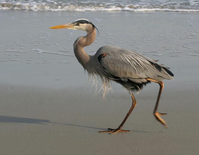 Keywords: blue heron great beach walking wildlife bird nature water ocean gray herodias hilton head island south carolina usa