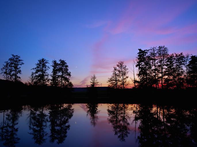 Keywords: blue hour water mood sunset atmosphere romantic landscape romance dusk night tree quiet