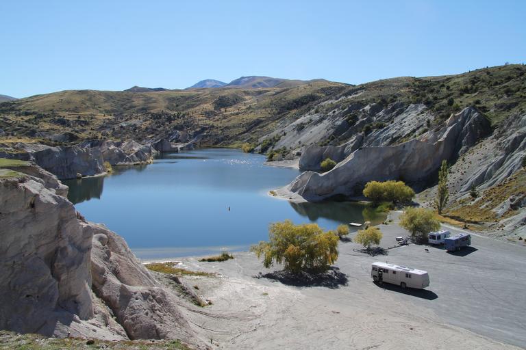 Keywords: outdoor landscape rock Blue Lake is a small lake adjacent to the town of Saint Bathans in Central Otago, New Zealand. The lake is man-made, the result of sluicing operations that began in 1873 when John Ewing (1844–1922) formed the St.Bathans Channel Company, to mine the Kildare Hill Gold Claim in St Bathans. His company constructed a tailings channel and introduced hydraulic elevating to work the claim. As this work progressed the Kildare Hill Claim became the site of the deepest hydraulic elevating operation in the world, that would turn a 120-metre hill into a 68-metre hole. Work stopped in 1902 when there was insufficient fall in the tailings channel to carry away the tailings. By 1905 John Ewing was bankrupt as a result of poor investments in other locations. The Kildare Hill Claim was then taken up by the Scandinavian Water Race Company in that year. This company restarted operations and worked the claim until 1932, when it was finally abandoned due to the fear of undermining the town of St Bathans. Natural drainage from the surrounding hills filled the hole with water and created the present day lake. The Blue Lake is a key feature of modern-day St. Bathans and is used for swimming, fishing, bodyboarding, and kayaking. en.wikipedia.org/wiki/Blue_Lake_(Otago) Blue Lake is a small lake adjacent to the town of Saint Bathans in Central Otago, New Zealand. The lake is man-made, the result of sluicing operations that began in 1873 when John Ewing (1844–1922) formed the St.Bathans Channel Company, to mine the Kildare Hill Gold Claim in St Bathans. His company constructed a tailings channel and introduced hydraulic elevating to work the claim. As this work progressed the Kildare Hill Claim became the site of the deepest hydraulic elevating operation in the world, that would turn a 120-metre hill into a 68-metre hole. Work stopped in 1902 when there was insufficient fall in the tailings channel to carry away the tailings. By 1905 John Ewing was bankrupt as a result of poor investments in other locations. The Kildare Hill Claim was then taken up by the Scandinavian Water Race Company in that year. This company restarted operations and worked the claim until 1932, when it was finally abandoned due to the fear of undermining the town of St Bathans. Natural drainage from the surrounding hills filled the hole with water and created the present day lake. The Blue Lake is a key feature of modern-day St. Bathans and is used for swimming, fishing, bodyboarding, and kayaking. en.wikipedia.org/wiki/Blue_Lake_(Otago) |