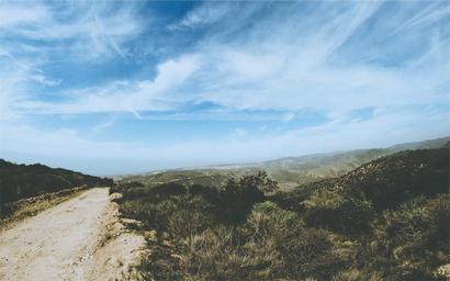 Keywords: blue sky clouds country road bushes grass hills mountains nature