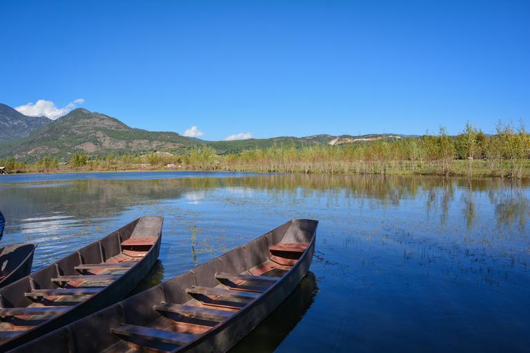 Keywords: blue sky white cloud mountain the scenery in yunnan province water ship tree