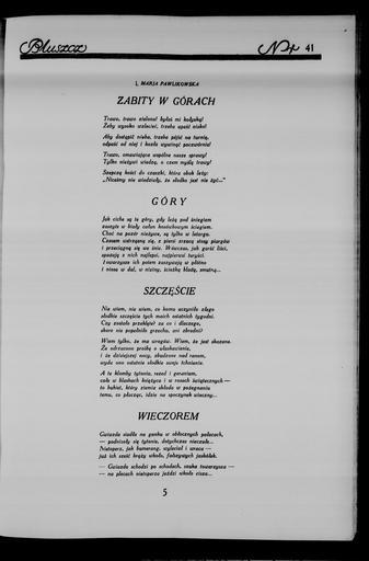 | Keywords: Bluszcz rok LX nr 41, 8 października 1927 p05.jpg pl skan z czasopisma PL 1927 http //www wbc poznan pl/dlibra/publication id 90510 from dirids 1 tab 1 lp 1 QI 1A924FBA1EA9510E98FAB93D43665DA6-1 WBC Maria Pawlikowska-Jasnorzewska 1891-1945 other versions Custom license marker 2016 01 02 PD-old-auto-1996 1945 Poems by Maria Pawlikowska-Jasnorzewska published in 'Bluszcz' magazine Uploaded with UploadWizard | ||||