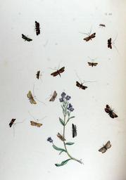 | Keywords: BMAT.II-109.jpg en Aplota palpella; Macrochila robertsonella; Enicostoma thunbergana; Alabonia geoffroyella; Oecophora oliviella; Oecophora sulphurella; Adela latreillella; Adela sultzella; Adela degeerella; Adela fasciella; Adela cuprella; Adela viridella; Adela frischella; Adela swammerdamella; Adela panzerella; Adela robertella Plate 109 1845 British Moths and their Transformations Volume II 1845 http //caliban mpiz-koeln mpg de/westwood/moths2/high/IMG_4021 html Henry Noel Humphreys and John Obadiah Westwood PD-old Uploaded with UploadWizard British Moths and their Transformations Volume II |