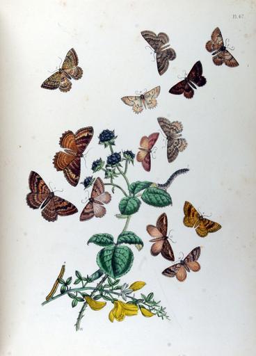 | Keywords: BMAT.II-67.jpg en 1 Triphosa cervinata; 2 Triphosa dubitata; 3 Trophossia cinereata; 4 Camptogramma bilineata; 5 Eucosmia undulata; 6 Charissa obscuraria 7 caterpillar; 8 Charissa dilucidaria; 9 Charisse pullata; 10 Chrarissa serotinaria; 11 Charissa operaria; 12 Pachycnemia hippocastanaria; 13 Chaesias spartiata 14 caterpillar; 15 Thera obliquaria Plate 67 1845 British Moths and their Transformations Volume II 1845 http //caliban mpiz-koeln mpg de/westwood/moths2/high/IMG_3683 html Henry Noel Humphreys and John Obadiah Westwood PD-old Uploaded with UploadWizard British Moths and their Transformations Volume II |