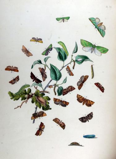 Keywords: BMAT.II-79.jpg en Hylophila prasinana; Hylophila quercana; Earis chlorana; Tortrix viridana; Tortrix palleana; Tortrix viburnana; Tortrix pillerana; Tortrix galiana; Lozotoenia forsterana; Lozotoenia sorbiana; Lozotoenia heparana; Lozotoenia cinnamoneana; Lozotoenia ribeana; Lozotoenia grossulareana; Lozotoenia cerasana; Lozotoenia corylana; Lozotoenia croceana; Lozotoenia laevigata Plate 79 1845 British Moths and their Transformations Volume II 1845 http //caliban mpiz-koeln mpg de/westwood/moths2/high/IMG_3946 html Henry Noel Humphreys and John Obadiah Westwood PD-old Uploaded with UploadWizard British Moths and their Transformations Volume II |