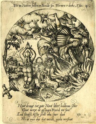 Keywords: BMprintAN00343789 001 l.jpg en Emblematic print downfall of the oppressors of the Netherlands Hand of God appearing from cloud with 'crown of patience' for the Netherlands represented by kneeling female figure bound hands raised in prayer; on her right the oppressor ejected from heaven towards fiery serpents; image contained within circle a mirror/a globe with handle lower left Etching Inscription Language Inscription Content Lettered with biblical quotation Isaiah 14 9 above image and 4-line verse paraphrase of Isaiah 10 12 below and annotated '168' top right Height 210 millimetres Width 158 millimetres http //www britishmuseum org/research/search_the_collection_database/search_object_details aspx objectid 3065791 partid 1 Anonymous 16th century Dutch artist s 1570 16th-century engravings Hand of God PD-old-100 Kneeling in prayer in art |