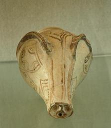 Keywords: Boar rhyton Louvre AO18521.jpg Boar rhyton Mycenaean ceramic imported by Ugarit Found in the acropolis of Ras Shamra Rhyton en forme de tête de sanglier Céramique mycénienne importée par Ugarit Provenance acropole de Ras Shamra ca 1300 1100 BC ceramic Institution Louvre object department Near Eastern antiquities room ID 128 21628 object history credit line ProvenanceEvent excavated Claude Schaeffer 1935 accession number Louvre number 18521 own photo date 2006 Marie-Lan Nguyen artwork license PD-old-100 photo license other versions Mycenaean pottery Ancient Greek pottery rhyta Ugarit Near Eastern Antiquities in the Louvre - Room B Boars in ancient Greek pottery Boar heads in art Mycenaean Rhyta |