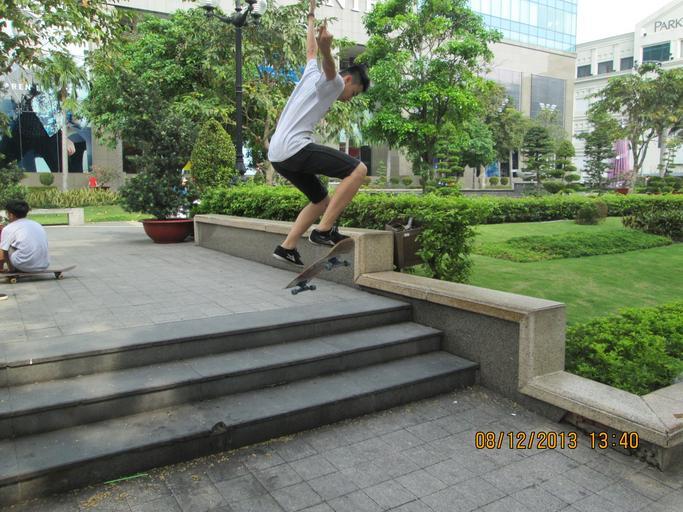 Keywords: 'Board Skating'.JPG en Young boy board skating in a park in Saigon own Rudolph A Furtado Sunday 8-12-2013 Sports in Ho Chi Minh City Taken with Canon PowerShot A810 Cc-zero