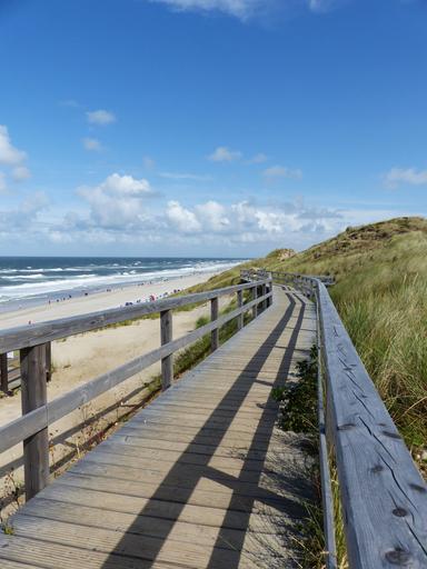 Keywords: boardwalk sea coast blue beach sylt summer holiday clouds sand