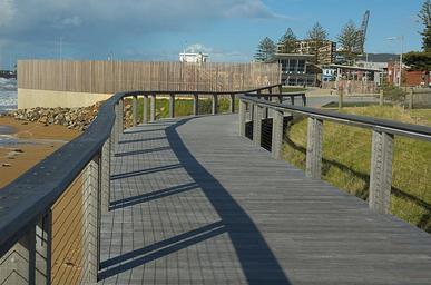 Keywords: boardwalk tasmania australia landscape sky clouds fence railing sea ocean water rocks beach nature outside