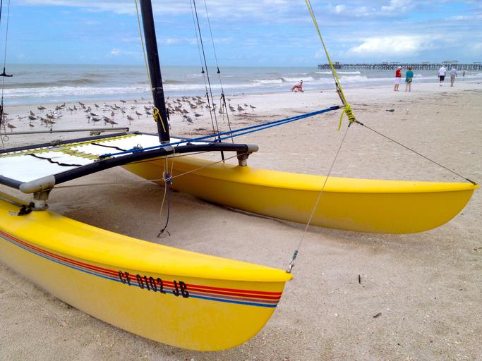 Keywords: boat catamaran sailboat ocean beach birds sand florida recreation sport florida beach
