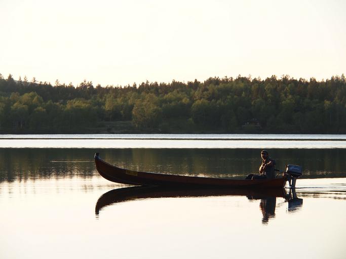 Keywords: boat lake water beautiful views summer finland midnight sun woods