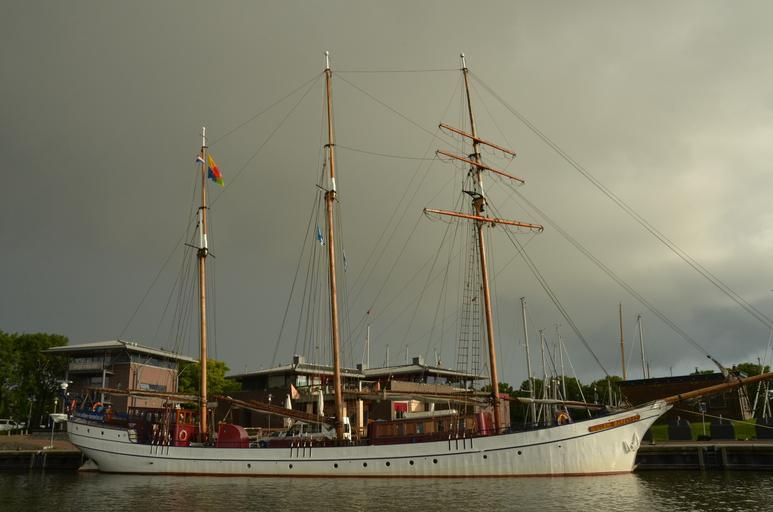 Keywords: boat ship sailing boat mast sailing boating water port dark air storm rain threat sun sunlight