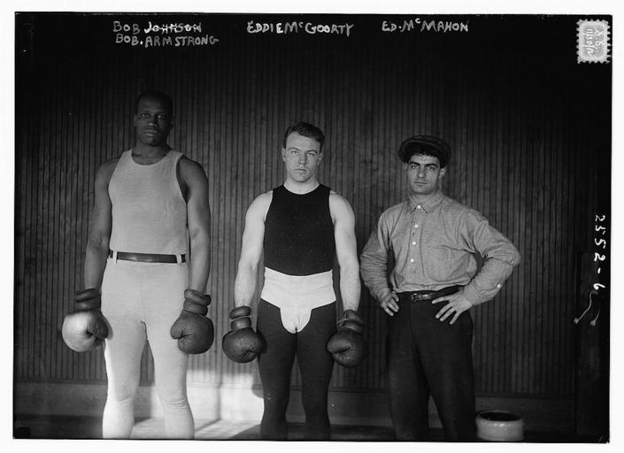 | Keywords: Bob Armstrong, Eddie McGoorty, Ed McMahon 2830853220 b04a9667f0 o.jpg en wikipedia 2012 January 8 Bob Armstrong Eddie McGoorty and Ed McMahon<br/> Bain News Service publisher Bob Armstrong Eddie McGoorty Ed McMahon between ca 1910 and ca 1915 1 negative glass ; 5 x 7 in or smaller Notes Title from unverified data provided by the Bain News Service on the negatives or caption cards Forms part of George Grantham Bain Collection Library of Congress Format Glass negatives Rights Info No known restrictions on publication Repository Library of Congress Prints and Photographs Division Washington D C 20540 USA hdl loc gov/loc pnp/pp print General information about the Bain Collection is available at hdl loc gov/loc pnp/pp ggbain Persistent URL hdl loc gov/loc pnp/ggbain 11841 Call Number LC-B2- 2552-6 ggbain 11841 en wikipedia <br/> original text 1 George Grantham Bain Collection Library of Congress Between ca 1910 and ca 1915 - likely 1914 George Grantham Bain PD-Bain Original upload log page en wikipedia Bob_Armstrong 2C_Eddie_McGoorty 2C_Ed_McMahon_2830853220_b04a9667f0_o jpg 2011-04-26 04 03 Richard Arthur Norton 1958- 1024×744× 87849 bytes <nowiki>Bob Armstrong boxer Eddie McGoorty and Ed McMahon in 1914 PD-US Bain News Service publisher Bob Armstrong Eddie McGoorty Ed McMahon between ca 1910 and ca 1915 1 negative glass ; 5 x 7 in or smaller Notes Title from </nowiki> 1873 births 1933 deaths Boxers from the United States Eddie McGoorty |