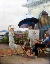 | Keywords: Bodarevsky 010.jpg Artwork Creator Nicholas Bodarevsky en The author and model 1912 oil canvas cm 64 52 Private collection accession number object history credit line http //forum artinvestment ru/attachment php attachmentid 618781 d 1264871103 PD-old-70 <gallery> File Bodarevsky_011 jpg </gallery> Nikolai Kornilievich Bodarevsky Standing females in art People and chairs Paintings of painters in plein air | ||||