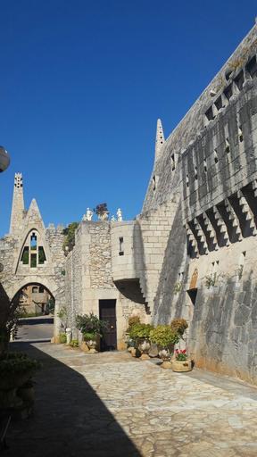 | Keywords: que ver cerca de barcelona quevercercadebarcelona gaudí barcelona gaudíbarcelona alrededores de barcelona alrededoresdebarcelona gaudi y el modernismo gaudiyelmodernismo celler guell cellerguell garraf sitges celler guell-gaudi cellerguellgaudi gaudi-bodegas guell gaudibodegasguell gaudi-cerca-de-barcelona gaudicercadebarcelona architecture outdoor building Garraf y Las Bodegas Güell de Gaudí quevercercadebarcelona.blogspot.com.es/ Muy cerca de Barcelona, a unos 20 km, aproximadamente, se encuentran las Bodegas Güell. SERVICIO DE VISITAS GUIADAS GRATIS POR BARCELONA iNFORMACION EN barcelonavisitgratis@gmx.es Esta obra se debe a un encargo de Eusebio Guell a Gaudí para la construcción de unas bodegas donde almacenar un vino conocido como Bodegas Guell, destinado al suministro a su Cia. marítima y exportación. Se trata de un conjunto arquitectónico de gran belleza, donde Gaudí integra la construcción perfectamente en el paisaje con la originalidad y soluciones arquitectónicas innovadoras que caracterizan al genio de Gaudí. La construcción se realizó entre 1895 a 1901 bajo la dirección de Francesc Berenguer, estrecho colaborador de Antoni Gaudi. En esta etapa Gaudí explora el estilo neo gótico en un intento de perfeccionarlo y agotarlo. La construcción es realmente bella y original, rematada en forma piramidal y unida al edificio de la Masía anexa con dos puentes. Es de admirar la armonía del conjunto, con la vieja torre de guardia al fondo. En cierto modo recuerda una fortaleza. El edificio está coronado por una capilla. Como en todas las obras de Gaudí, hay que detenerse en los detalles, únicos y espléndidos, como las chimeneas, el remate en catenaria de la capilla, la caseta del guarda y la preciosa puerta de forja que le da acceso. Hoy día el conjunto alberga un restaurante pero está permitida la visita. Se encuentra en la pequeña localidad de Garraf, enclavada en las costas de Garraf, en la carretera entre Castedelldefels y Sitges. También se puede llegar a las Bodegas Guelll en ferrocarril desde la estación de cercanías de Barcelona. Es un lugar de gran belleza, para pasar un día de playa y complementarlo con una paella en alguno de sus restaurantes o merenderos. Garraf y Las Bodegas Güell de Gaudí quevercercadebarcelona.blogspot.com.es/ Muy cerca de Barcelona, a unos 20 km, aproximadamente, se encuentran las Bodegas Güell. SERVICIO DE VISITAS GUIADAS GRATIS POR BARCELONA iNFORMACION EN barcelonavisitgratis@gmx.es Esta obra se debe a un encargo de Eusebio Guell a Gaudí para la construcción de unas bodegas donde almacenar un vino conocido como Bodegas Guell, destinado al suministro a su Cia. marítima y exportación. Se trata de un conjunto arquitectónico de gran belleza, donde Gaudí integra la construcción perfectamente en el paisaje con la originalidad y soluciones arquitectónicas innovadoras que caracterizan al genio de Gaudí. La construcción se realizó entre 1895 a 1901 bajo la dirección de Francesc Berenguer, estrecho colaborador de Antoni Gaudi. En esta etapa Gaudí explora el estilo neo gótico en un intento de perfeccionarlo y agotarlo. La construcción es realmente bella y original, rematada en forma piramidal y unida al edificio de la Masía anexa con dos puentes. Es de admirar la armonía del conjunto, con la vieja torre de guardia al fondo. En cierto modo recuerda una fortaleza. El edificio está coronado por una capilla. Como en todas las obras de Gaudí, hay que detenerse en los detalles, únicos y espléndidos, como las chimeneas, el remate en catenaria de la capilla, la caseta del guarda y la preciosa puerta de forja que le da acceso. Hoy día el conjunto alberga un restaurante pero está permitida la visita. Se encuentra en la pequeña localidad de Garraf, enclavada en las costas de Garraf, en la carretera entre Castedelldefels y Sitges. También se puede llegar a las Bodegas Guelll en ferrocarril desde la estación de cercanías de Barcelona. Es un lugar de gran belleza, para pasar un día de playa y complementarlo con una paella en alguno de sus restaurantes o merenderos. |