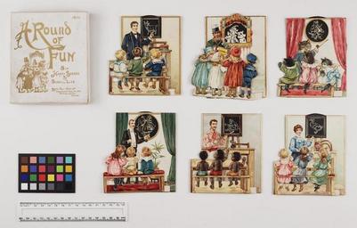 | Keywords: Bodleian Libraries, Art novelty series; 212.jpg  Game entitled A round of fun six happy scenes of school life; Artistic series trade mark Designed at the Studios in England and printed at the Arts Works in Germany Six 3-dimensional scraps each with wheel showing images Punch and Judy only digitised Johnson copy is in its original box; Punch and Judy; Children's party; Boy's school; Little darkies' lesson; Nursery lesson; Girl's school; Image 8 box 6 3-D scraps; 130 x 110 x 19 mm exhibition history 007085 object history object type <gallery> File Bodleian Libraries Art novelty series; 212 38 jpg File Bodleian Libraries Art novelty series; 212 37 jpg File Bodleian Libraries Art novelty series; 212 36 jpg File Bodleian Libraries Art novelty series; 212 35 jpg File Bodleian Libraries Art novelty series; 212 34 jpg File Bodleian Libraries Art novelty series; 212 33 jpg </gallery> Licensed-PD-Art PD-old-100 cc-by-4 0 place of creation London England Raphael Tuck Sons; Paris France Raphael Tuck Sons; New York N Y Raphael Tuck Sons place of discovery http //digital bodleian ox ac uk/inquire/p//56384d1c-1e1f-4a0d-b6e6-4d9e9ee0a324 Digital Bodleian Template John Johnson Round of fun six happy scenes of school life-Art novelty series; 212 Uploaded with GWToolset Bodleian Libraries Art novelty series; 212 http //iiif bodleian ox ac uk/iiif/image/2ba72e1b-11a5-4bca-b16b-bb1e1d4beae5/full/ 1000 1000/0/default jpg Files uploaded by the Bodleian Libraries' Wikimedian In Residence Paper toys Drums in art Educators in art Classrooms in art School children in art Nursery rhymes Anthropomorphic cats Punch and Judy Blackboards in art |