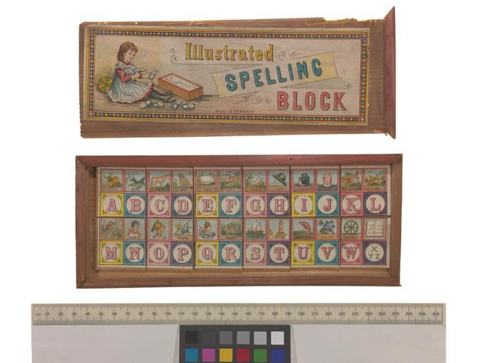 | Keywords: Bodleian Libraries, Illustrated spelling block.jpg  Game entitled Illustrated spelling block; images and letters on recto Versos are blank 12 blocks in wooden box Lid of Johnson copy is warped and splintered; Apple Bird A B; Cow Dog C D; Egg Fox E F; Goose Hat G H; Inkstand Jam I J; Kangaroo Lion K L; Monkey Nigger M N; Officer Plum O P; Queen Rabbit Q R; Ship Tower S T; Umbrella Violet U V; Wheel The end of the alphabet W XYZ; Illustrated spelling block box 12 pieces; 96 x 240 x 12 mm exhibition history Allegro identifier 20040831/15 45 20 jl object history object type Licensed-PD-Art PD-old-100 cc-by-4 0 place of creation Germany place of discovery http //digital bodleian ox ac uk/inquire/p//fa72069a-38f8-45f3-ab1f-97e2dfd7face Digital Bodleian Template John Johnson Illustrated spelling block Uploaded with GWToolset Bodleian Libraries Illustrated spelling block http //iiif bodleian ox ac uk/iiif/image/fa72069a-38f8-45f3-ab1f-97e2dfd7face/full/ 1000 1000/0/default jpg Educational games Playing children in art Files uploaded by the Bodleian Libraries' Wikimedian In Residence Latin alphabet charts |