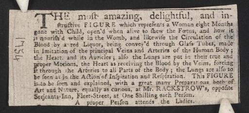 Keywords: Bodleian Libraries, Newscutting relating to Rackstrow's announcing A figure... which represents a woman eight months gone with child.jpg Newscutting relating to Rackstrow's announcing A figure which represents a woman eight months gone with child; a proper person attends the ladies ; 1754 manuscript ; Figure which represents a woman eight months gone with child; Other figures; Newscutting relating to Rackstrow's announcing A figure which represents a woman eight months gone with child single sheet; 38 x 90 mm exhibition history Most amazing delightful and instructive figure which represents a woman eight months gone with child open'd when alive to shew the foetus and how it is nourish'd while in the womb Allegro identifier 20030527/14 50 33 hm object history object type Licensed-PD-Art PD-old-100 cc-by-4 0 place of creation place of discovery http //digital bodleian ox ac uk/inquire/p//92d698a5-5967-4044-9060-14d4e622da1c Digital Bodleian Template John Johnson Newscutting relating to Rackstrow's announcing A figure which represents a woman eight months gone with child Uploaded with GWToolset Bodleian Libraries Newscutting relating to Rackstrow's announcing A figure which represents a woman eight months gone with child http //iiif bodleian ox ac uk/iiif/image/92d698a5-5967-4044-9060-14d4e622da1c/full/ 1000 1000/0/default jpg Files uploaded by the Bodleian Libraries' Wikimedian In Residence Exhibitions Pregnancy Model building Clippings |