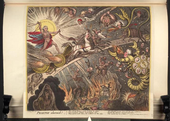 | Keywords: Bodleian Libraries, Phaeton alarmed.jpg accession number Curzon b 26 153 Satire on Portland's second ministry and caricature of George Canning British political cartoon ; A cartoon in praise of George Canning The ghosts of Pitt with a hero's laurels and Fox with a pitchfork in hellfire flank a burning globe on which Napoleon rides mounted on the Russian bear 355 x 388 sheet ; 343 x 373 platemark mm exhibition history Source filename politi004-axx-0001-0 object history object type Sketch at File Bodleian Libraries Phaeton alarmd jpg Licensed-PD-Art PD-old-100 cc-by-4 0 place of creation London England Hannah Humphrey place of discovery http //digital bodleian ox ac uk/inquire/p//844008ec-10cf-4b14-847d-23675617968f Digital Bodleian Template Bodleian Libraries Phaeton alarmed Uploaded with GWToolset Bodleian Libraries Phaeton alarmed http //iiif bodleian ox ac uk/iiif/image/844008ec-10cf-4b14-847d-23675617968f/full/ 1000 1000/0/default jpg Files uploaded by the Bodleian Libraries' Wikimedian In Residence 1808 works in the United Kingdom George Canning Caricatures of William Pitt the Younger Charles James Fox Robert Jenkinson 2nd Earl of Liverpool Spencer Perceval Robert Stewart Viscount Castlereagh John Scott 1st Earl of Eldon William Grenville 1st Baron Grenville Richard Temple-Nugent-Brydges-Chandos-Grenville 2nd Duke of Buckingham and Chandos George Spencer 2nd Earl Spencer John Russell 6th Duke of Bedford Francis Rawdon-Hastings 1st Marquess of Hastings George Tierney Augustus FitzRoy 3rd Duke of Grafton Charles Stanhope 3rd Earl Stanhope Edward Smith-Stanley 12th Earl of Derby Frederick Howard 5th Earl of Carlisle Charles Howard 11th Duke of Norfolk Henry Vassall-Fox 3rd Baron Holland William Windham John Jervis 1st Earl of St Vincent Richard Brinsley Sheridan Henry Petty-FitzMaurice 5th Marquess of Lansdowne Samuel Whitbread 1764 “1815 Henry Addington 1st Viscount Sidmouth Thomas Erskine 1st Baron Erskine Edward Law 1st Baron Ellenborough Charles Grey 2nd Earl Grey James Maitland 8th Earl of Lauderdale Caricatures of Napoleon I of France Animals in art The Devil History of astrology Phaeton James Gillray Curzon Collection |