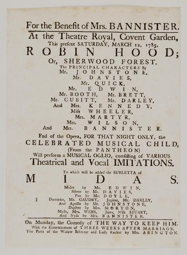 Keywords: Bodleian Libraries, Playbill of Covent Garden, Saturday, March 12, 1785, announcing Robin Hood; or, Sherwood forest &c..jpg Playbill of Covent Garden Saturday March 12 1785 announcing Robin Hood; or Sherwood forest c for the benefit of Mrs Bannister; Robin Hood; or Sherwood forest; Theatrical and vocal imitations; Midas; Way to keep him; Three weeks after marriage; Playbill of Covent Garden Saturday March 12 1785 announcing Robin Hood; or Sherwood forest c single sheet; 248 x 180 mm exhibition history For the benefit of Mrs Bannister Allegro identifier 20010704/14 02 57 af object history object type Licensed-PD-Art PD-old-100 cc-by-4 0 place of creation s l England s n place of discovery http //digital bodleian ox ac uk/inquire/p//9c01f7ba-c64f-4777-b8f0-51a006520061 Digital Bodleian Template John Johnson Playbill of Covent Garden Saturday March 12 1785 announcing Robin Hood; or Sherwood forest c Uploaded with GWToolset Bodleian Libraries Playbill of Covent Garden Saturday March 12 1785 announcing Robin Hood; or Sherwood forest c http //iiif bodleian ox ac uk/iiif/image/9c01f7ba-c64f-4777-b8f0-51a006520061/full/ 1000 1000/0/default jpg Files uploaded by the Bodleian Libraries' Wikimedian In Residence Playbills Child actors Robin Hood Legendary character Pantheon Oxford Street London England opera |