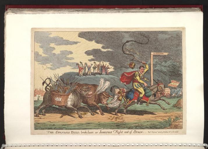 View Original:Bodleian Libraries, The Spanish bull broke loose or- Josephs flight out of Spain.jpg (1000x717)