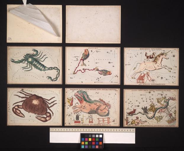 | Keywords: Bodleian Libraries, Urania's mirror, or a view of the heavens 104.jpg Game entitled Urania's mirror or a view of the heavens; hold to light with tissue paper backing to each card Cards with plate numbers are hand-coloured Rest also engraved by Sidy Hall are uncoloured and unnumbered; View of the heavens; Camelopardalis Tarandus and Custos Messium Pl 2; Lynx and Telescopium Herschilii Pl 8; Ursa Major Pl 9; Taurus Poniatowski Serpentarius Scutum Sobiesky and Serpens Pl 12; Lacerta Cygnus Lyra Vulpecula and Anser Pl 14; Pegasus and Equuleus Pl 15; Aries and Musca Borealis Pl 16; Cancer Pl 19; Libra Pl 22; Scorpio Pl 23; Capricornus Pl 25; Pisces Pl 27; Psalterium Georgii Fluvius Eridanus Cetus Officina Sculptoris Fornax Chemica and Machina Electrica Pl 28; Monoceros Canis Minor and Atelier Typographique Pl 31; Noctua Corvus Crater Sextans Uraniae Hydra Felis Lupus Centaurus Antila Pneumatica Argo Navis and Pyxis Nautica Pl 32; Hercules and Corona Borealis; Sagittarius and Corona Australis; Gloria Frederich Andromeda and Triangula; Cassiopeia; Delphinus Sagitta Aquila and Antinous; Cetus Apparatus Sculptoris Officina Chemica and Machina Electrica; Orion; Cepheus; Draco and Ursa Minor; Bootes Canes Venatici and Coma Berenices; Perseus and Caput Medusae; Aurica; Canis Major and Lepus; Leo Major and Leo Minor; Taurus; Virgo; Gemini; Aquarius; Image 3 box 33 plates; 235 x 173 x 32 mm exhibition history Allegro identifier 20040901/10 56 51 jl object history object type <gallery> File Bodleian Libraries Urania's mirror or a view of the heavens 106 jpg File Bodleian Libraries Urania's mirror or a view of the heavens 103 jpg File Bodleian Libraries Urania's mirror or a view of the heavens jpg </gallery> <gallery> File Sidney Hall - Urania's Mirror - Noctua Corvus Crater Sextans UraniƦ Hydra Felis Lupus Centaurus Antlia Pneumatica Argo Navis and Pyxis Nautica whole card jpg </gallery> Licensed-PD-Art PD-old-100 cc-by-4 0 place of creation London England Samuel Leigh place of discovery http //digital bodleian ox ac uk/inquire/p//a882e289-f46e-4aab-8f5c-c26c31071859 Digital Bodleian Template John Johnson Urania's mirror or a view of the heavens Uploaded with GWToolset Bodleian Libraries Urania's mirror or a view of the heavens_104 http //iiif bodleian ox ac uk/iiif/image/a5acc7b0-3c0e-4e8d-811e-931d875d3784/full/ 1000 1000/0/default jpg Files uploaded by the Bodleian Libraries' Wikimedian In Residence Educational games Urania's Mirror |
