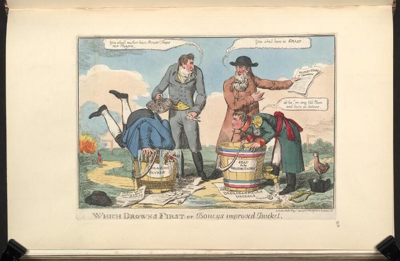 Keywords: Bodleian Libraries, Which drowns first or- Boneys improved bucket.jpg Satire on the Napoleonic wars and restrictions on trade British political cartoon 234 x 332 sheet mm exhibition history Source filename politi004-azc-0001-0 object history object type Licensed-PD-Art PD-old-100 cc-by-4 0 place of creation London England William Holland place of discovery http //digital bodleian ox ac uk/inquire/p//a43bdc54-167d-48c1-a8b8-04d731a01834 Digital Bodleian Template Bodleian Libraries Which drowns first or Boneys improved bucket Uploaded with GWToolset Bodleian Libraries Which drowns first or Boneys improved bucket http //iiif bodleian ox ac uk/iiif/image/a43bdc54-167d-48c1-a8b8-04d731a01834/full/ 1000 1000/0/default jpg Files uploaded by the Bodleian Libraries' Wikimedian In Residence Napoleonic Wars Mordaunt Charles Sir 1771 -1842 Rose George 1744-1818 Caricatures of Napoleon I of France National stereotypes -- American Curzon Collection