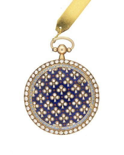 | Keywords: Boett från 1800 cirka - Hallwylska museet - 98902.tif LSH artwork sv Boett av guld med emalj och orientaliska pärlor verk med s k spindelgång Bottenskal svagt konvext löst utan scharner På skalet ett klöverbladsmönster av pärlor på snedrutad botten av mörkblå genomskinlig translucide emalj med ett uppåtriktat blad i varje ruta varje blad med tre djupt i emaljen infattade pärlor och skaft i vit täckemalj samt begränsat av en smal guldrand i korsningarna mellan rutorna en liten pärla av röd genomskinlig emalj Däromkring en bård varpå i guld mot ljusblå botten i täckemalj parvis längdställda korta streck och runda prickar mellan två smala kantränder Kring ytterkanten en rad av fyrtiosex pärlor fattade i faden och med avdeckningar; kring sidokanten en smal käl Glasram med svagt konvext glas och i dekor som bottenskalets ytterkant samt med en rad av fyrtiofyra pärlor<br/>Gåva från kungen till grevinnan Christina Maria Sommerhjelm<br/>lefi 2015-08-12 original caption Boett från 1800 cirka <br/> Nyckelord Föremålsbild Fickur Emalj ca 1800 size cm 9 etui g 33 3 size cm 3 8 size cm 7 1 etui size cm 2 3 etui g 39 3 etui HWY Det Glittrar prel till 30 aug 2015 2014-2015 Livrustkammaren place of origin FR original filename hm_dig14100 16127 inventory number HWY XXXVIII G a 21 98902 CC-BY-SA Erik Lernestål <gallery caption Different images of same object > File Fickur 1800 cirka - Hallwylska museet - 98901 tif </gallery> Enamel Accessories Pocket watches Erik Lernestål Media contributed by LSH dim-with multiple size templates Media contributed by LSH unmatched keyword Media contributed by LSH 2015-11 |