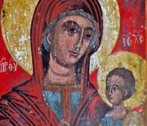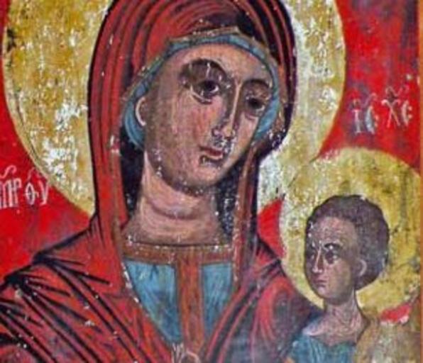 Keywords: Bogorodica Lakočerejska detail.jpg mk Икона на Св Бого одица со Х истос II половина на XVI век во Ц квата Вознесение Х истово во Лакоче ејскиот манасти ох идско http //www kalamus com mk/pdf_spisanija/patrimonium_4/13 20 20007_2 20Spisanie 202011 20Zura pdf ON THE TRAIL OF A PAINTING WORKSHOP IN OHRID FROM THE 17 th CENTURY author century 16 PD-Macedonia Icons of the Republic of Macedonia Church of the Ascension of Jesus Gorno Lakočerej |