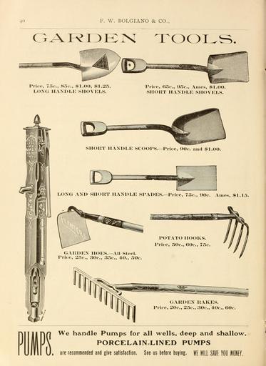 Keywords: Bolgiano's 1902 catalogue (16350029715).jpg 4 o <br> F W BOLGIANO CO <br> GARDEN TOOLS <br> Price 75c 85c 1 00 1 25 <br> LONG HANDLE SHOVELS <br> Price 65c 95c Ames 1 00 <br> SHORT HANDLE SHOVELS <br> – <br> SHORT HANDLE SCOOPS -Price 90c and 1 00 <br> In I HI <br> LONG AND SHORT HANDLE SPADES -Price 75c 90c Ames 1 15 <br> GARDEN HOES ” All Steel <br> Price 25c 30c 35c 40 50c <br> POTATO HOOKS <br> Price 50c 60c 75c <br> GARDEN RAKES <br> Price 20c 25c 30c 40c OOc <br> D <br> We handle Pumps for all wells deep and shallow <br> PORCELAIN-LINED PUMPS <br> are recommended and give satisfaction See us before buying WE WILL SAVE YOU MONEY 42156290 132756 65911 Page 40 Text http //www biodiversitylibrary org/page/42156290 1902 10 5962/bhl title 65911 F W Bolgiano Co ; Henry G Gilbert Nursery and Seed Trade Catalog Collection Biodiversity Heritage Library Bolgiano's 1902 catalogue tested seeds for the garden and farm Garden Stories Bulbs Plants Catalogs Fruit Garden tools Nurseries Horticulture Seeds Vegetables U S Department of Agriculture National Agricultural Library bhl page 42156290 dc identifier http //biodiversitylibrary org/page/42156290 bhlGardenStories BHLinbloom bulbs plants nurseries horticulture u s department of agriculture national agricultural library bhlgardenstories bhlinbloom Information field Flickr posted date ISOdate 2015-01-23 Check categories 2015 August 24 CC-BY-2 0 BioDivLibrary https //flickr com/photos/61021753 N02/16350029715 2015-08-24 08 53 39 cc-by-2 0 PD-old-70-1923 Bolgiano's 1902 catalogue Photos uploaded from Flickr by Fæ using a script |
