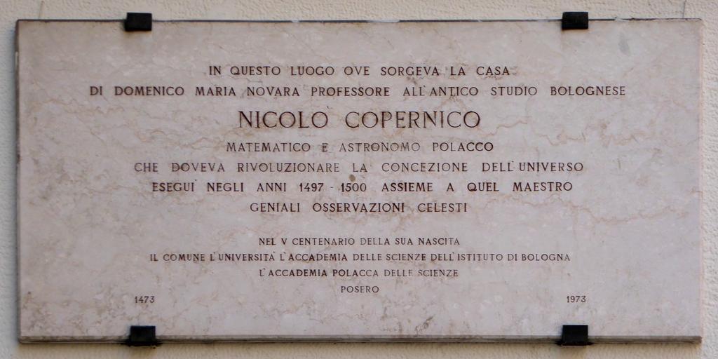 | Keywords: Bologna, Nicolo Copernico, 1.jpeg de Gedenktafel an die Arbeit von Nikolaus Kopernikus und Domenico Maria Novara in Bologna IT eo Tabulo memoriga pri la laboro de Nikolao Koperniko kaj Domenico Maria Novara en Bolonjo IT it Targa commemorativa al lavoro di Nicolo Copernico e Domenico Maria Novara a Bologna la Tabula commemorativa laboris Nicolai Copernici et Domenici Mariæ Novaræ Bononiæ Italia pl Tablica pamiątkowa dla Mikołaja Kopernika i Domenico Maria Novara w Bolonii Włochy self-photographed Aisano 2015-09-04 44 30 4 0 N 11 20 36 4 E heading SSW Here-worked plaques in Bologna Kopernik Nicolaus Copernicus Cc-zero |